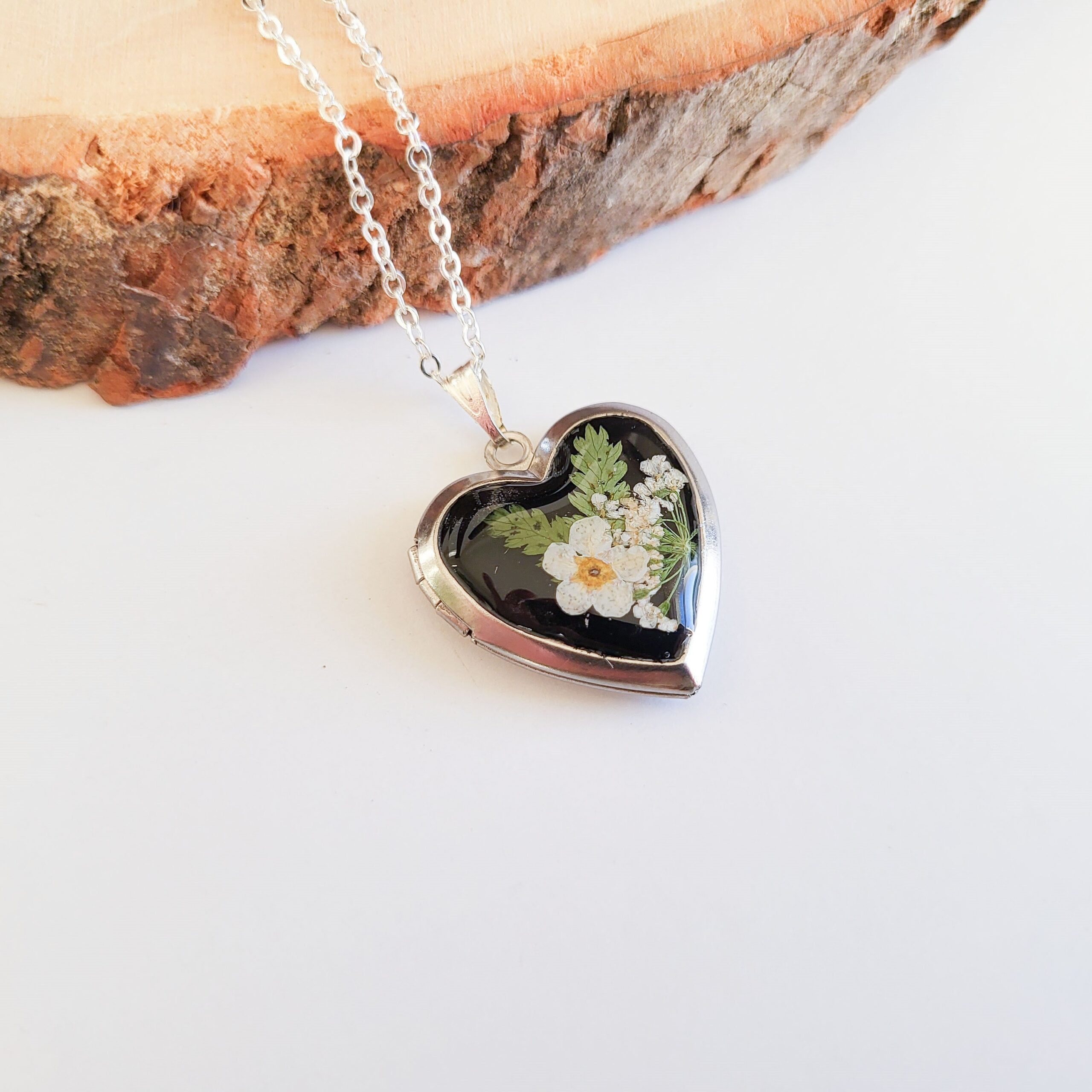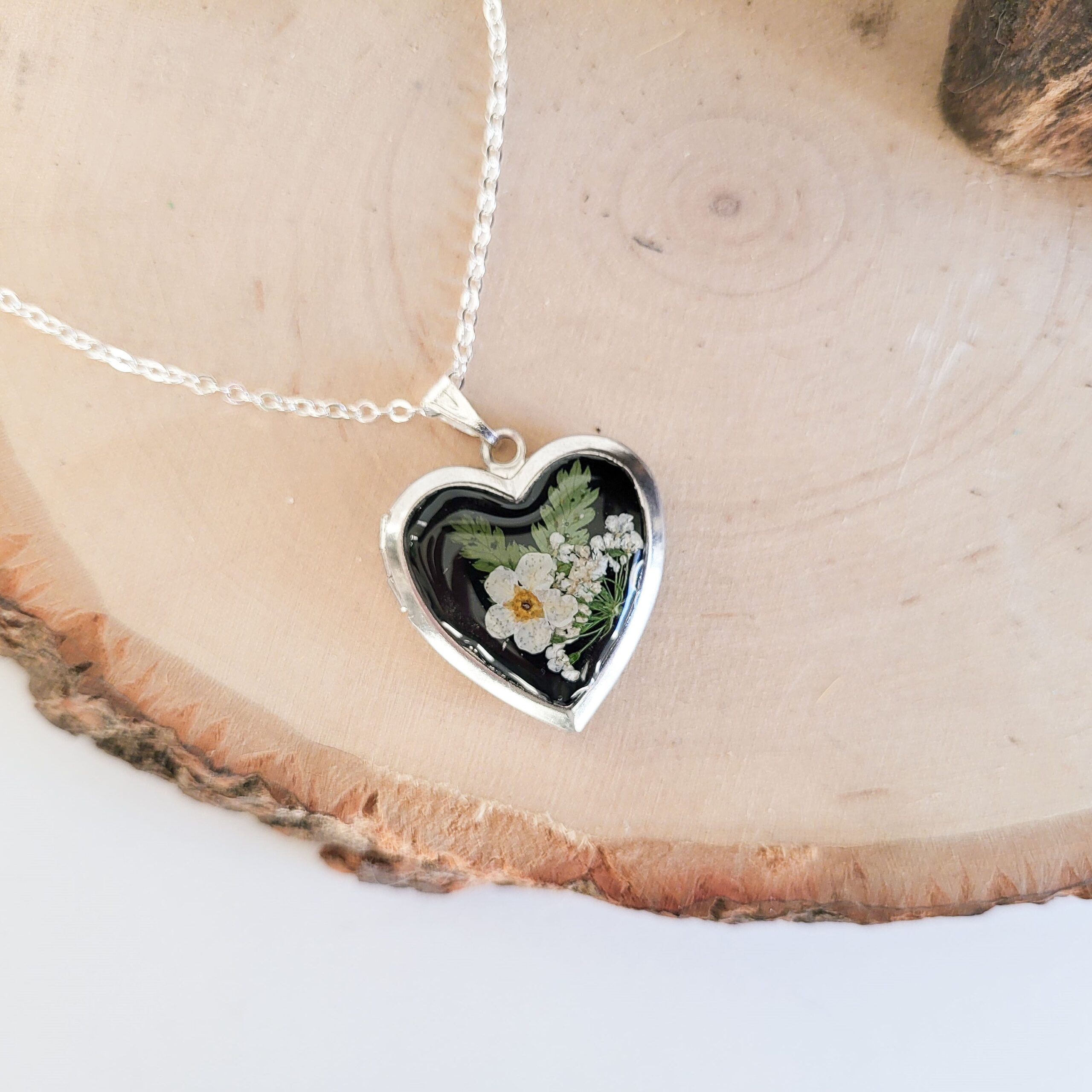 Capture memories with this exquisite real flower heart locket necklace, a perfect personalized gift keepsake. A beautiful way to cherish a special moment with a custom photo inside. Ideal for birthdays, anniversaries, or any meaningful occasion.