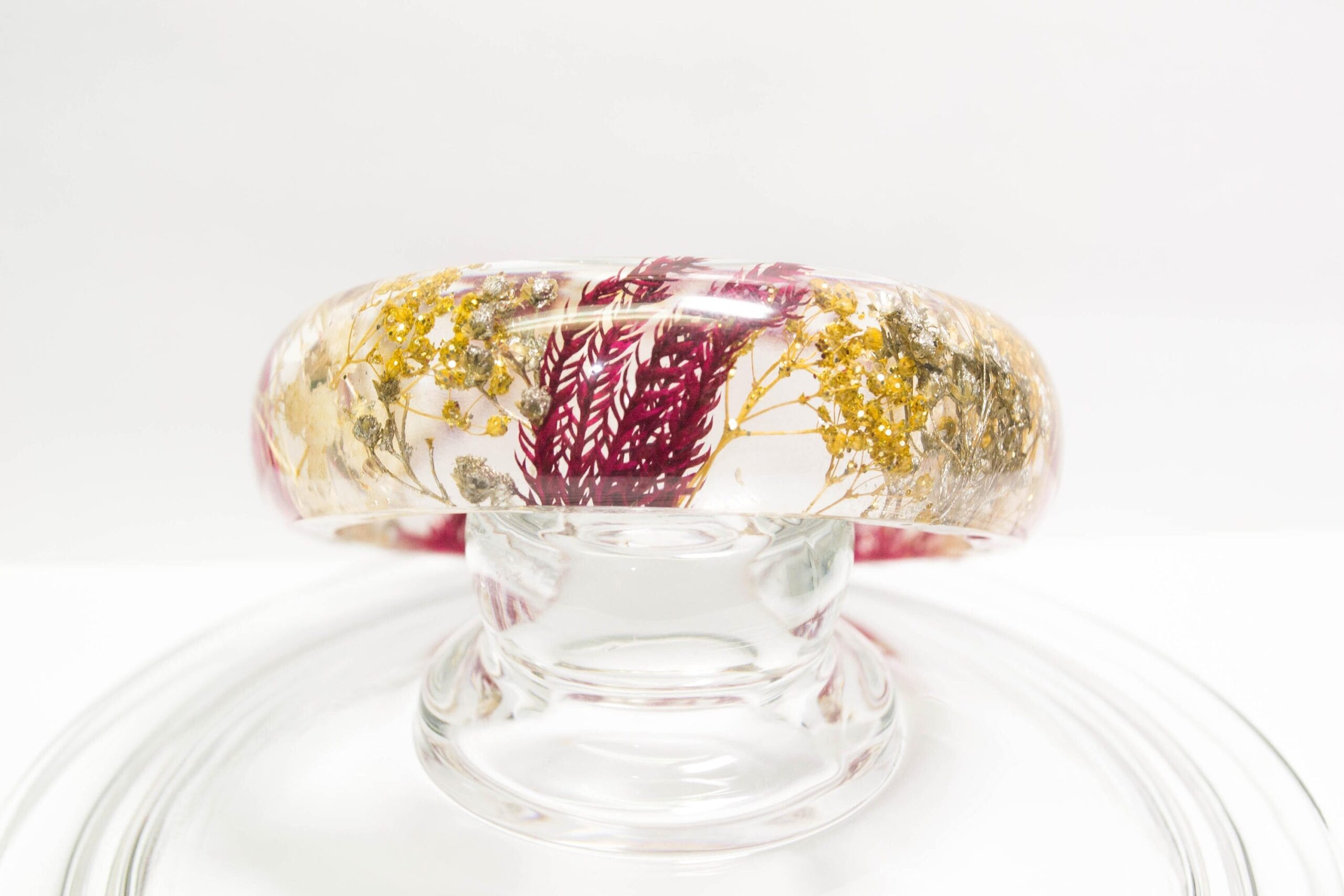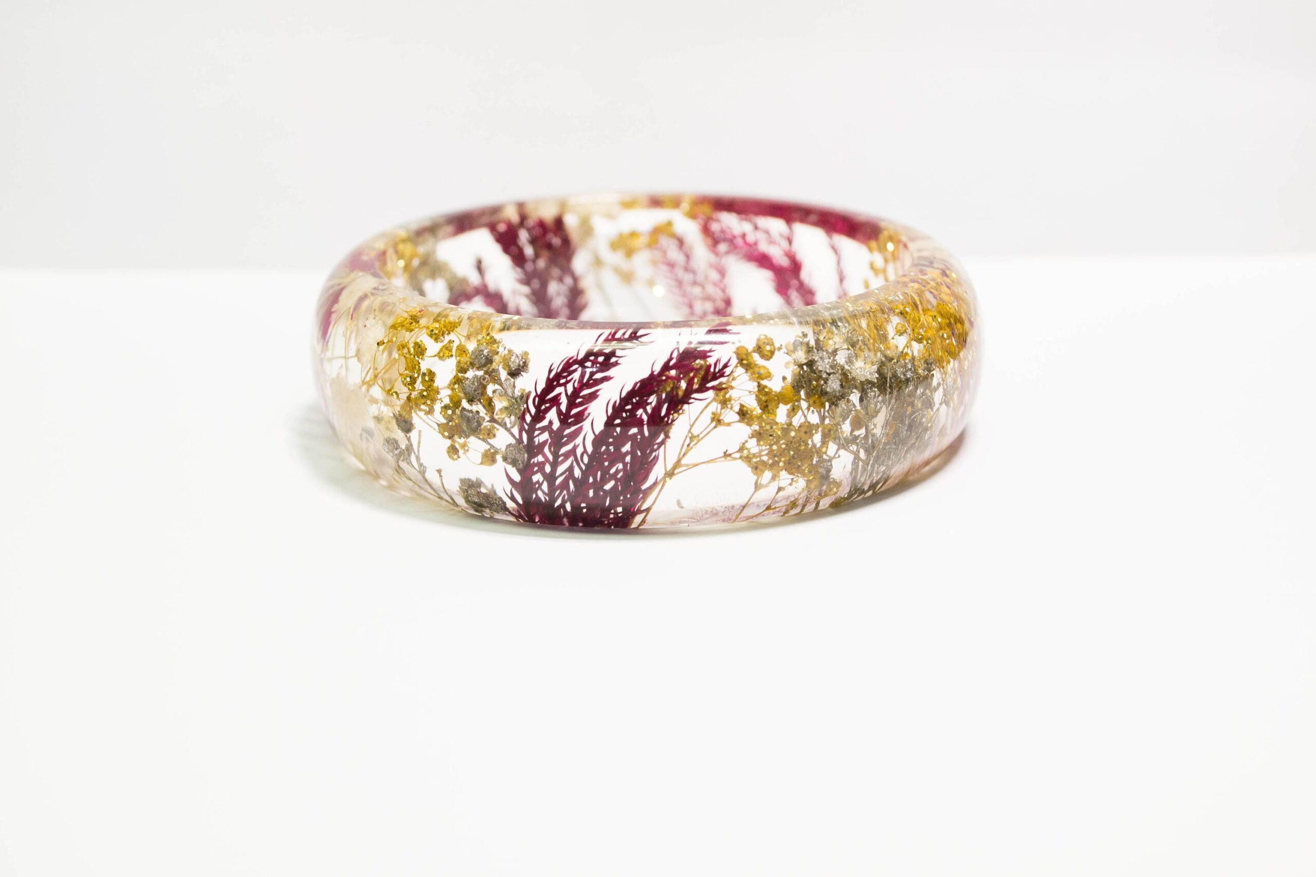 Stunning real flower bracelet featuring red pine, white, gold and silver Baby’s Breath flowers. The tiny Baby’s Breath flowers are a symbol of everlasting love, pureness and innocence. This bracelet makes a unique Christmas gift. The bracelet is handcrafted from start to finish, and it is made with crystal clear jeweler’s grade resin that captures the beauty and details of each flower. This nature bracelet makes a unique and wonderful gift.