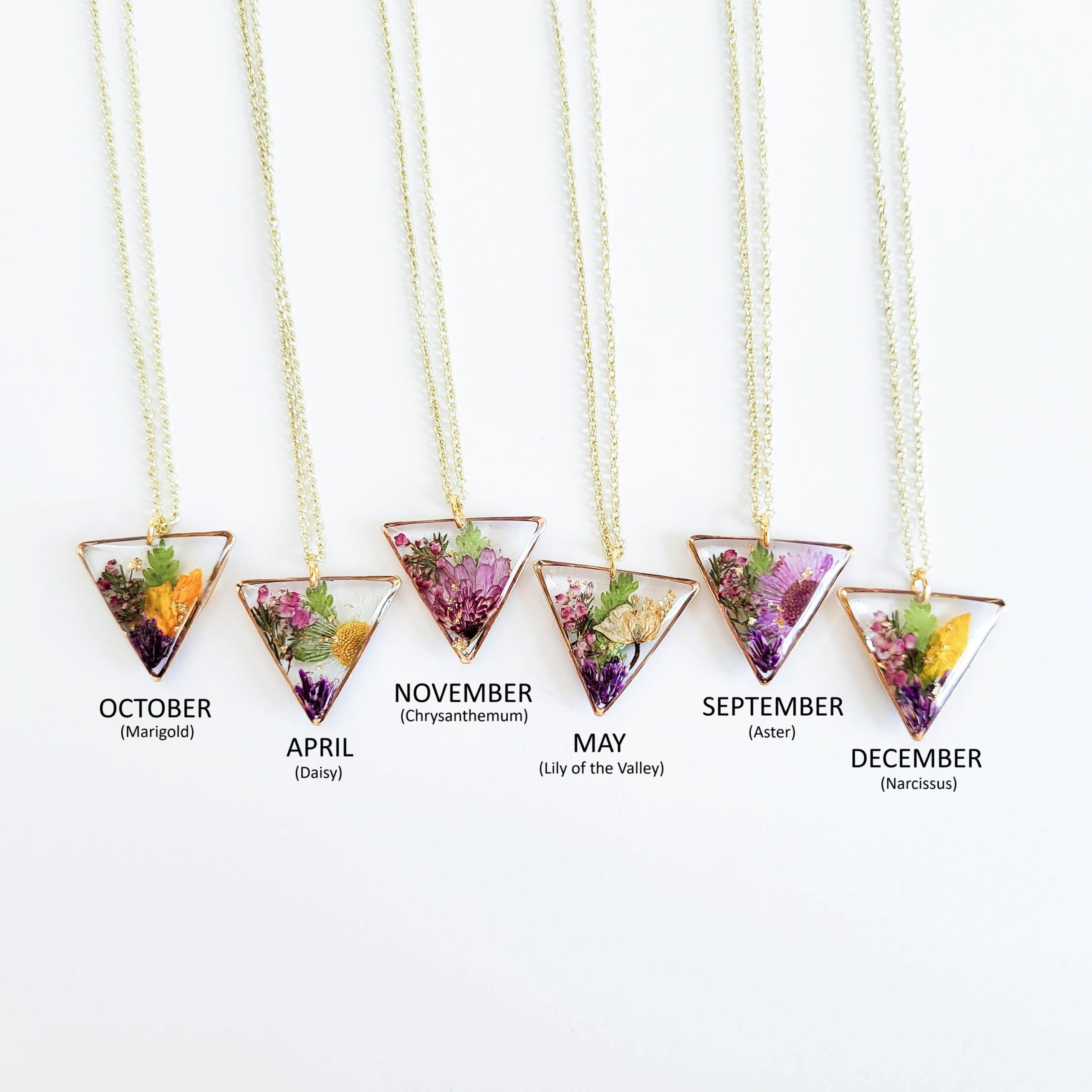 – CUSTOM: Combine multiple (up to 4) birth month flowers into a single pendant. If you select the CUSTOM option, please use the “notes about your order” box at checkout to list all the months you want included.